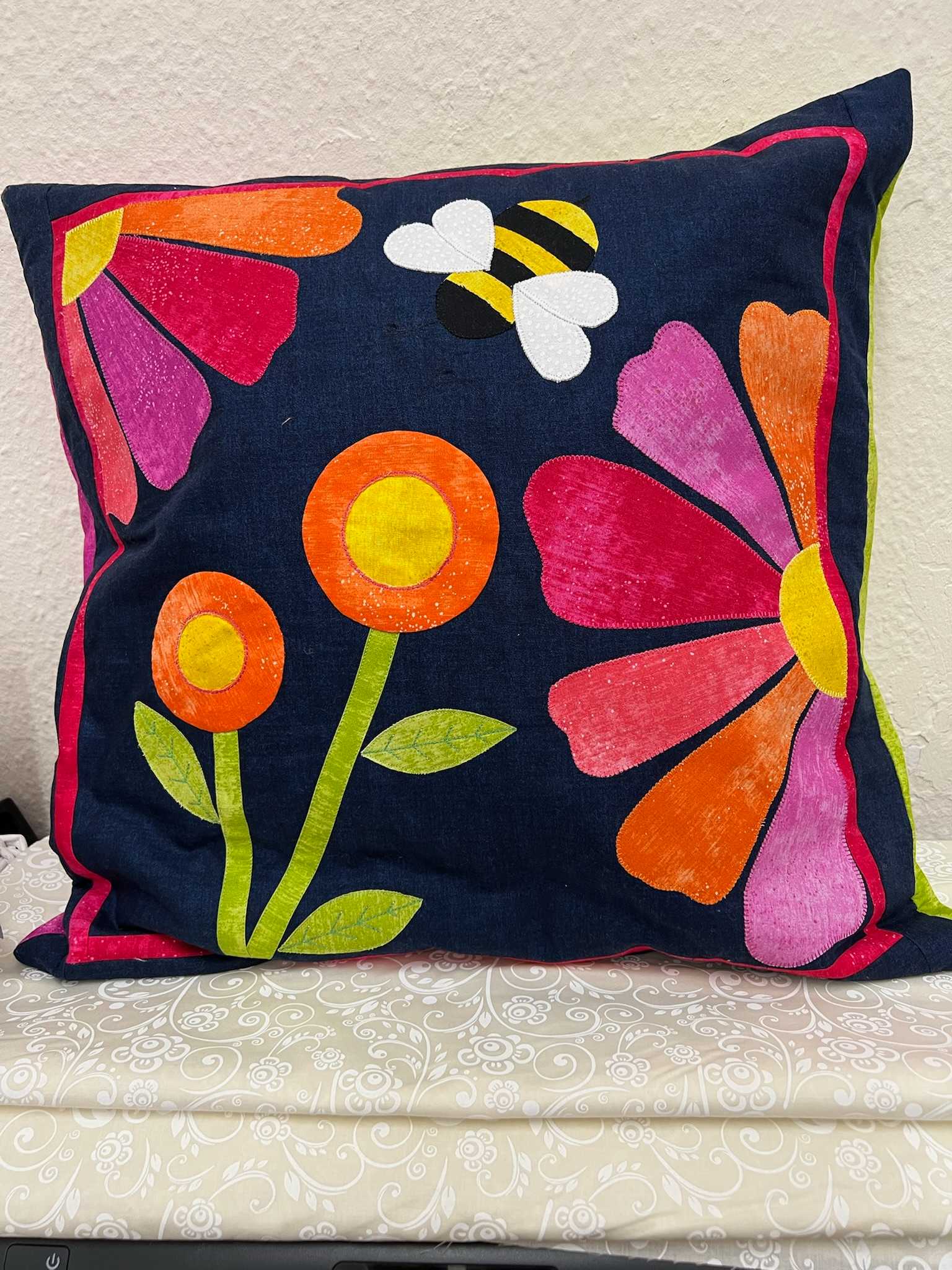 An introduction to appliqué, this workshop guides you through creating a charming flower cushion complete with a sweet little bee.