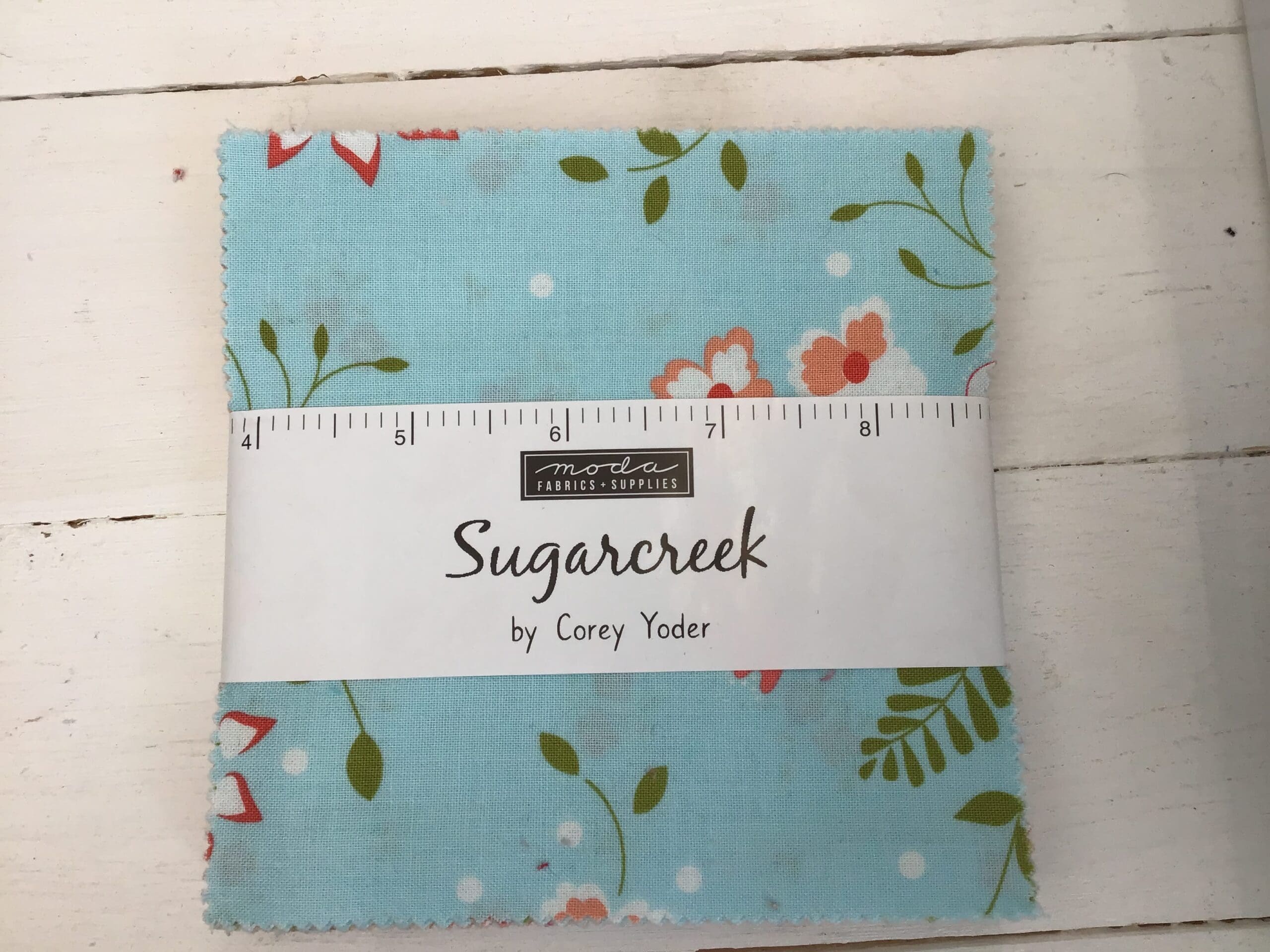 Sugar creek charm by Corey Yoder for Moda Teal peach multi